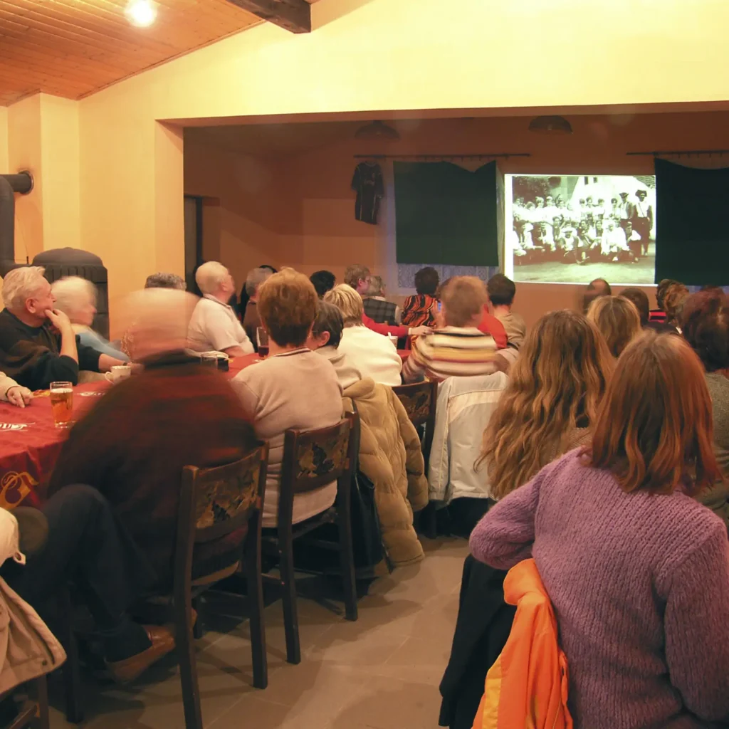 Takovýmto způsobem jsem vybrala přes 1500 originálních záběrů o naší obci s nejrůznějšími tématy. To už stálo za to uspořádat projekci dobových fotografií vsi a nakombinovat se čtením z kroniky.